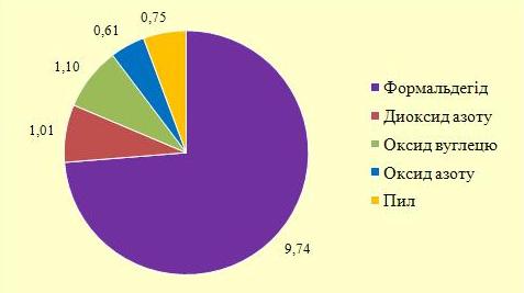 Спостерігалось перевищення максимальної разової гранично допустимої концентрації (ГДКм.р.)пилу(3,33 ГДКм.р.) формальдегіду (3,01 ГДКм.р.) та диоксиду азоту (1,83 ГДКм.р.) в атмосферному повітрі міста. Повторюваність перевищення максимальної разової гранично допустимої концентрації (у відсотках до кількості відібраних проб) склала 12,4% для формальдегіду, 2,78% для пилу та 0,46% для диоксиду азоту.