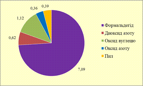 Спостерігалось перевищення максимальної разової гранично допустимої концентрації (ГДКм.р.) формальдегіду в атмосферному повітрі. Повторюваність перевищення гранично допустимої концентрації, по відношенню до загальної кількості відібраних проб, дорівнює 4,6%; максимальне значення разової концентрації склало 1,6 ГДКм.р. (02.10.12 р. о 01-00 на ПСЗ-1).