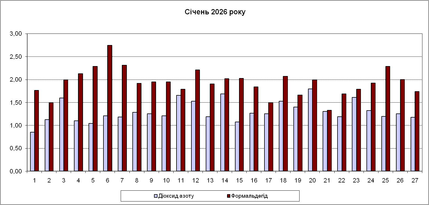 Порівняно з груднем 2025 року, в січні спостерігається ріст забруднення атмосферного повітря міста діоксидом азоту, оксидом вуглецю, формальдегідом; концентрації решти забруднювачів нижчі, ніж в минулому місяці.
