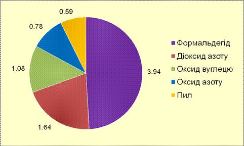 Перевищення максимальної разової гранично допустимої концентрації (ГДК м. р.) забруднюючих речовин в атмосферному повітрі міста виявлено при аналізі проб атмосферного повітря на вміст формальдегіду (2,98 ГДК м. р. ) та оксиду вуглецю (1,1 ГДК м. р.). Повторюваність перевищення ГДК м. р. формальдегіду склала 5,2%, оксиду вуглецю – 3,1%.