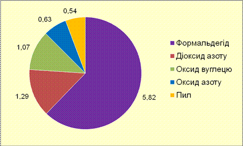 Перевищення максимальної разової гранично допустимої концентрації (ГДК м. р.) забруднюючих речовин в атмосферному повітрі міста виявлено при аналізі проб атмосферного повітря на вміст формальдегіду (2,45 ГДК м. р. ) та оксиду вуглецю (1,04 ГДК м. р.). Повторюваність перевищення ГДК м. р. формальдегіду склала 4,3%, оксиду вуглецю – 1,0%.