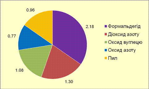 Перевищення максимальної разової гранично допустимої концентрації (ГДК м. р.) забруднюючих речовин в атмосферному повітрі міста спостерігалось при аналізі проб атмосферного повітря на вміст оксиду вуглецю (1,8 ГДК м. р. ) та пилу (1,7 ГДК м. р. ). Повторюваність перевищення ГДК м. р. оксиду вуглецю склала 3,4%, пилу - 4,6%.